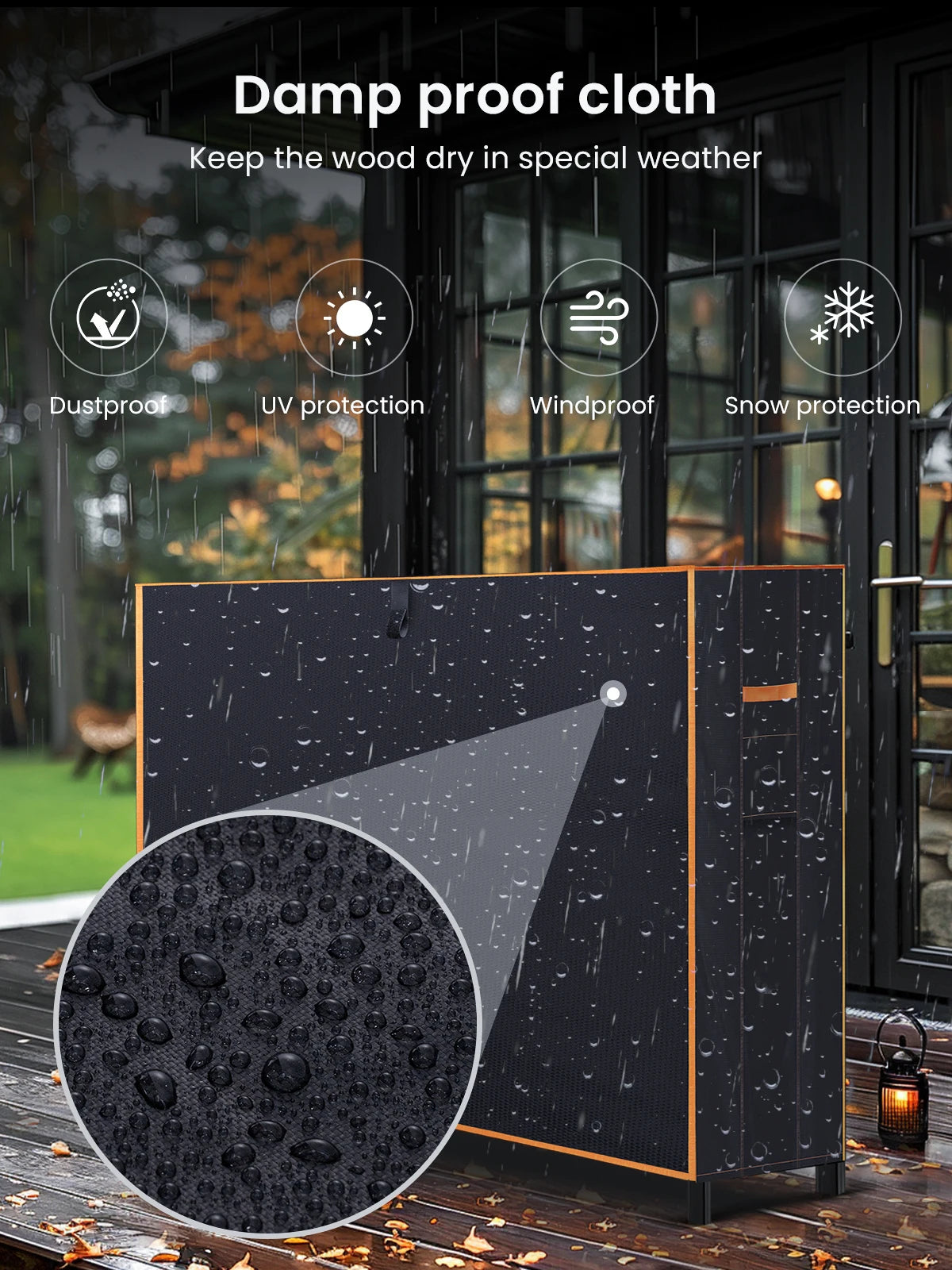 4ft Outdoor Firewood Log Rack, Double Sided Waterproof, Weather Protection, 4 Nylon Buckles