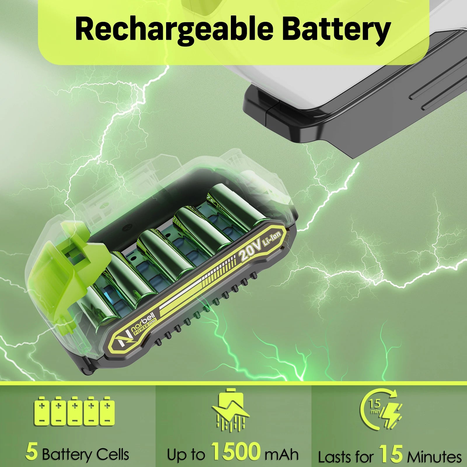 【Advanced Battery System】The battery of the leaf blower ensures maximum continuous power for 15 minutes on a single charge, allowing you to complete your cleaning task with confidence without worrying about running out of battery midway.