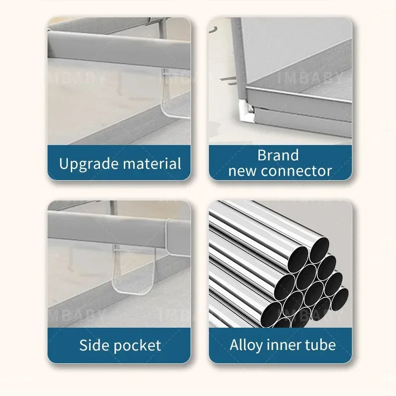 Playpen matrial: Stainless steel tube + Oxford mesh + PP plastic parts